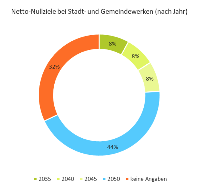 Ergebnisse: 30% der untersuchten Stadt- und Gemeindewerke kommunizieren ihr Klimaziel öffentlich, 70% veröffentlichen keine Angaben zu ihren Netto-Null Zielen.
