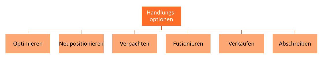 Prinzipiell sehen wir für eine zielführende Vorgehensweise, um ein Unternehmen oder einen Geschäftsbereich in die gewünschte Richtung zu bringen, die in Abbildung 1 dargestellten Optionen. Die einzelnen Optionen werden nachfolgend beschrieben unter Berücksichtigung der bei Telekommunikationsnetzen zu beachtenden Spezifika.